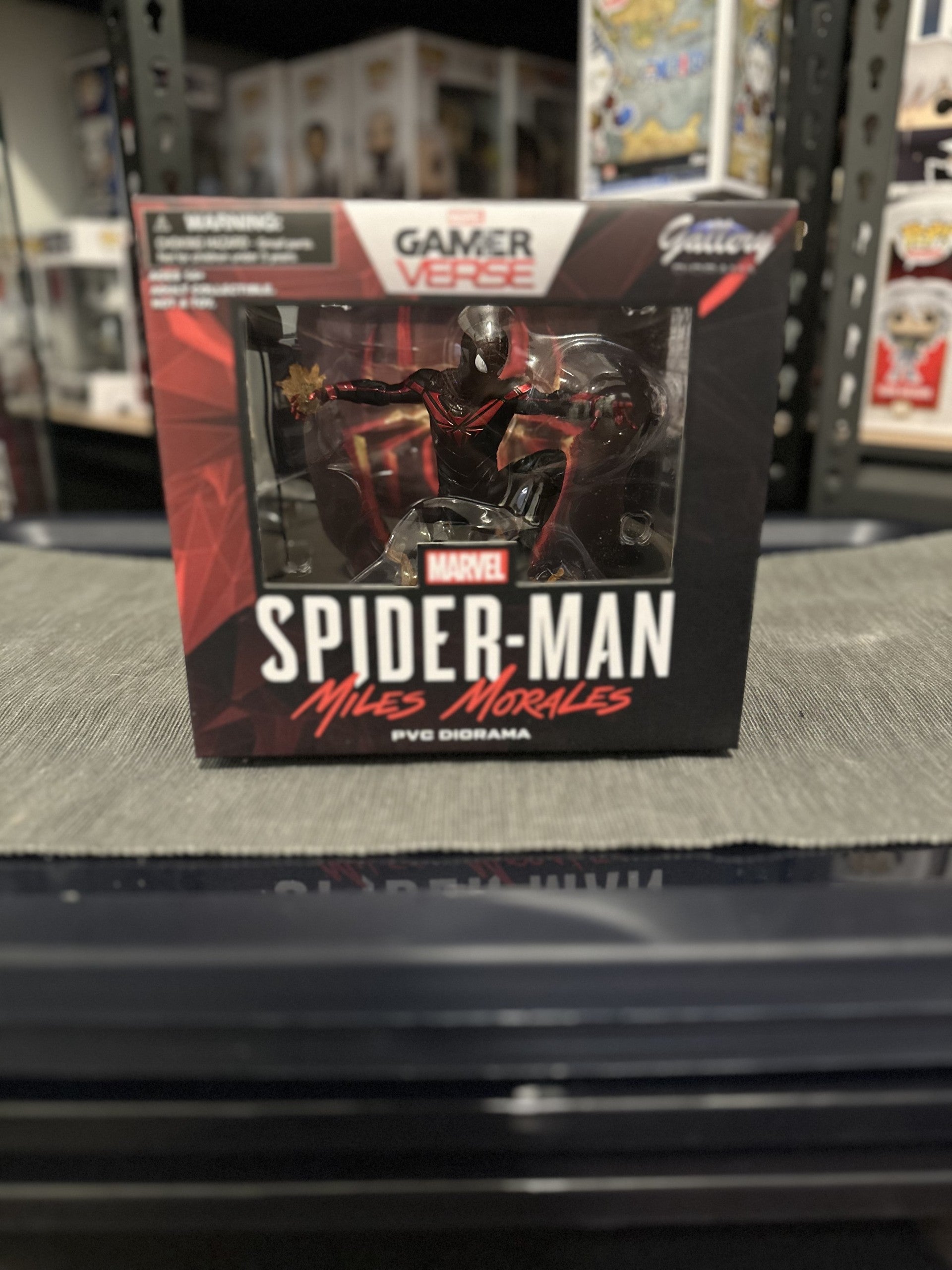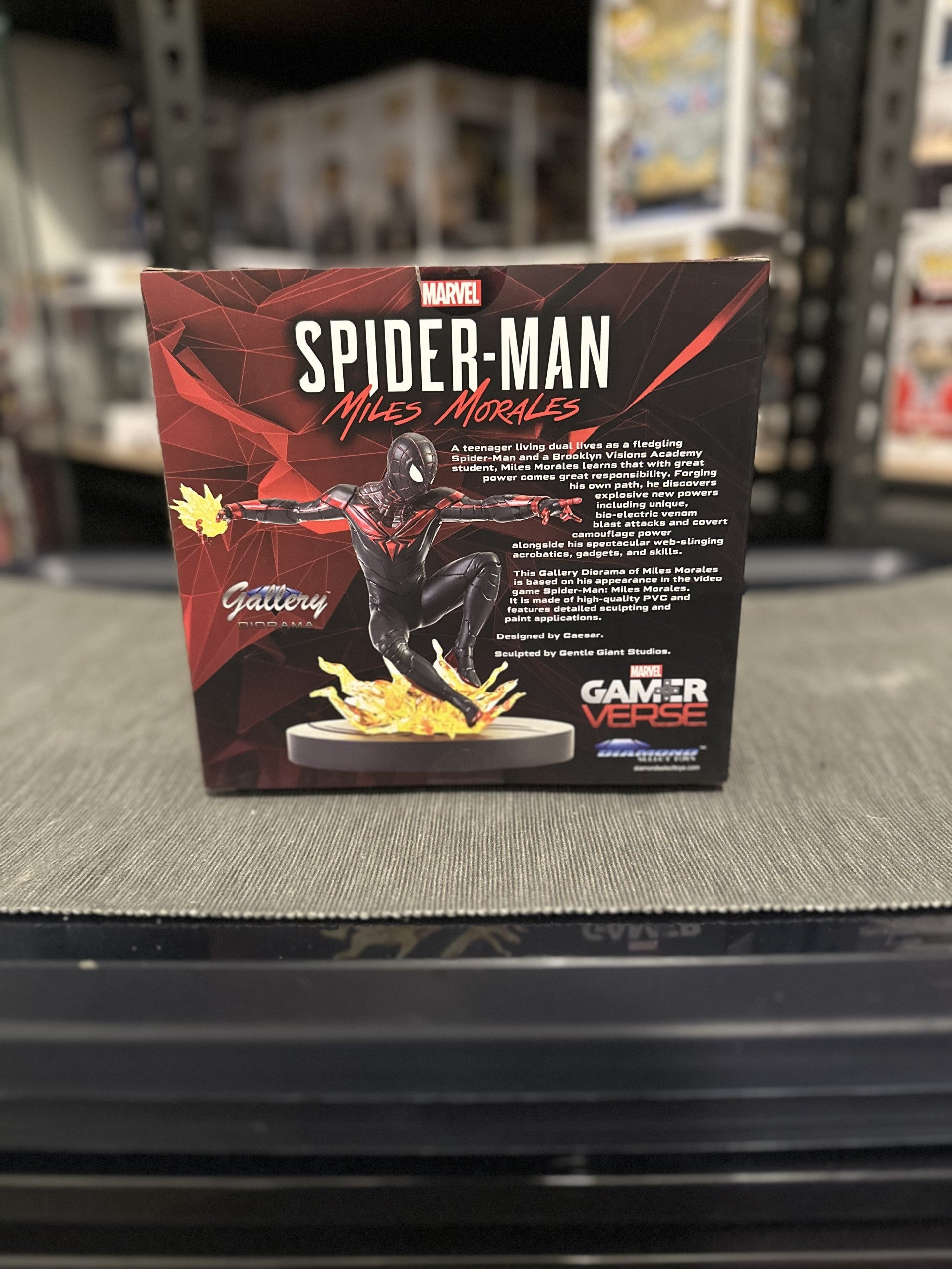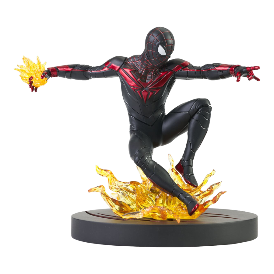 Swinging out of his hit video game, Miles Morales prepares to hurl a Venom Blast at his opponent in this all-new Gallery Diorama! Based on the game's costume design, Miles leaps over one blast as he charges up another in this sculpture made of high-grade PVC, and featuring translucent materials that catch the light. With detailed sculpting and paint applications, it comes packaged in a full-color window box. Designed by Caesar, sculpted by Gentle Giant Studios.