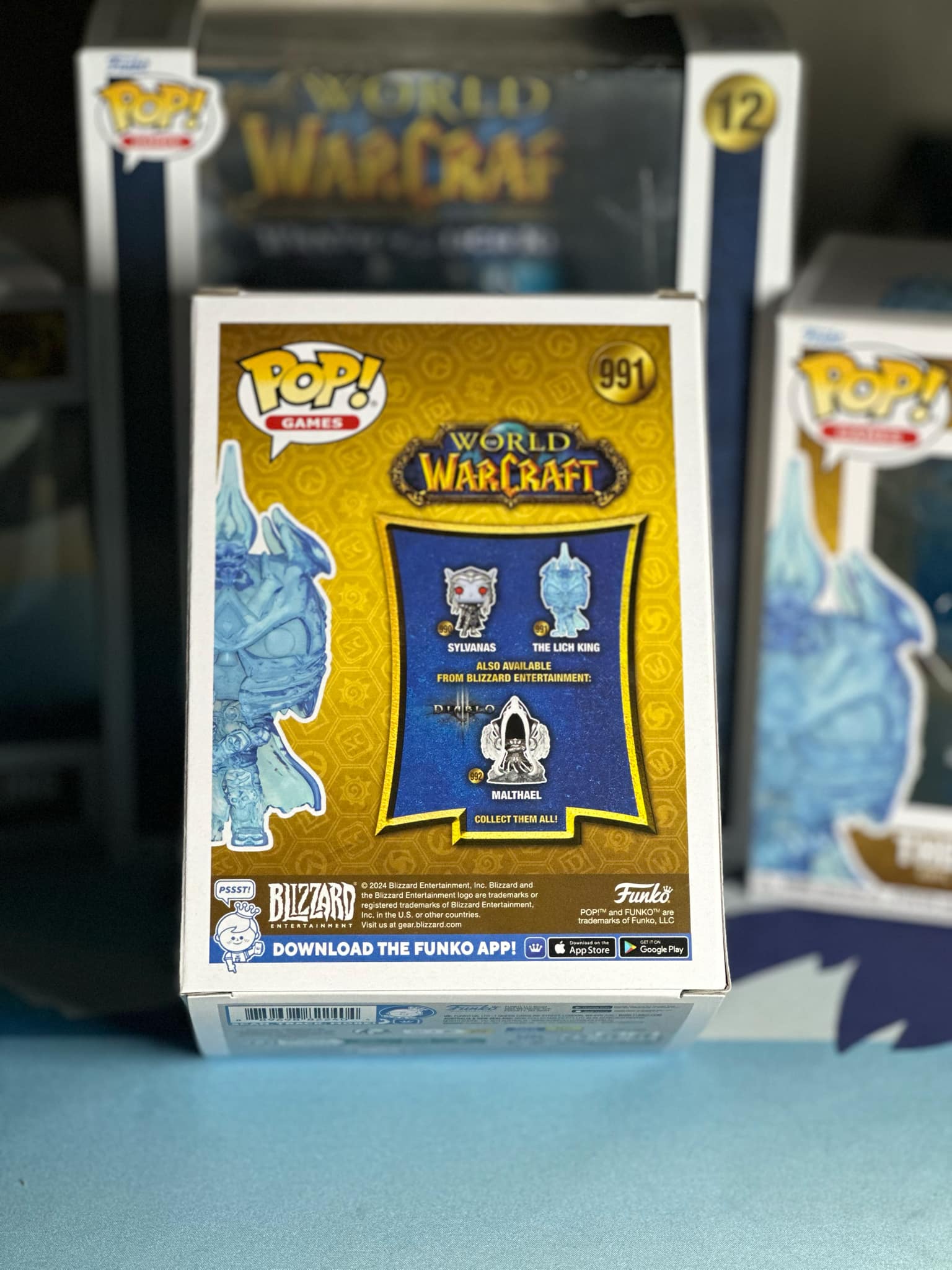 Embrace the risk of becoming a death knight with this World of Warcraft Lich King Pop! Vinyl. The cursed runeblade Frostmourne holds immense power, but beware, it may come at a cost.